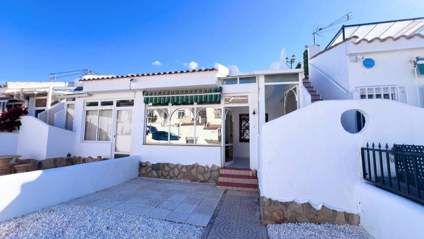 Ein pflegeleichter Gartenbereich befindet sich im vorderen Teil des Grundstücks. Im Inneren erwartet Sie ein gemütlicher Wohn-/Essbereich mit offener Einbauküche. Darüber hinaus verfügt das Haus über 2 Schlafzimmer mit Einbauschränken und ein Badezimmer. Die gesamte Immobilie ist mit Inverter-Klimaanlagen ausgestattet, die das ganze Jahr über für eine angenehme Atmosphäre sorgen.