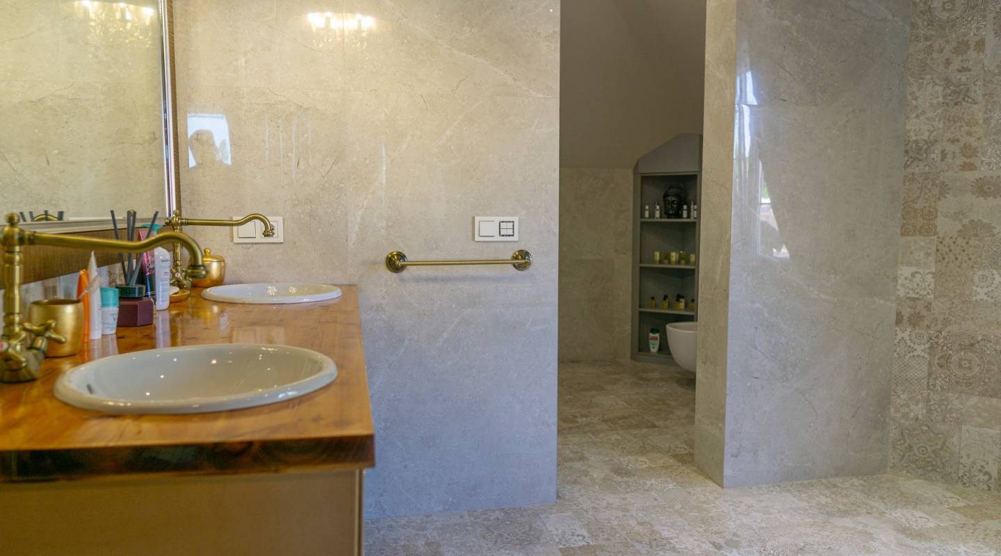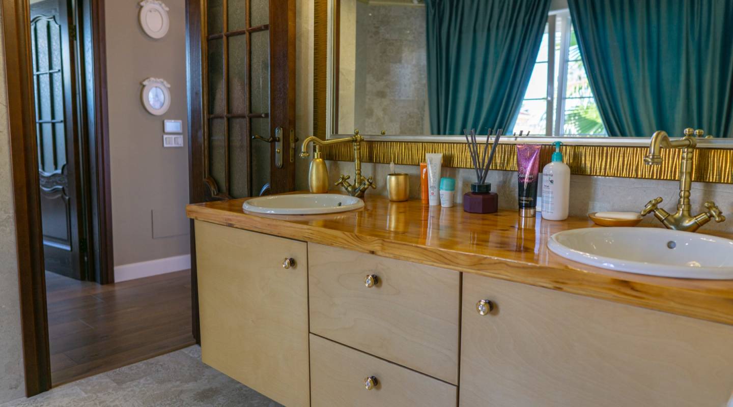 Cette magnifique villa est située dans l'urbanisation de Doña Pepa à Ciudad Quesada, près de l'hôtel La Laguna.Avec un terrain de 882 m² et une surface construite de 313 m², la propriété dispose de plusieurs pièces et de tout le confort.La maison s'ouvre sur un majestueux hall central à partir duquel toutes les autres pièces sont distribuées : au rez-de-chaussée, une salle à manger adjacente, une grande cuisine, une chambre double et une salle de bains complète, ainsi qu'un très grand dressing. Au premier étage, une galerie surélevée, deux chambres doubles avec une terrasse donnant sur le jardin et deux salles de bains. La maison est équipée d'un chauffage central par le sol, y compris les bacs à douche. Toutes les installations et les services techniques sont centralisés dans une pièce spécifique. Fenêtres blindées, climatisation centrale (chaque étage est indépendant), sol stratifié insonorisé.Le jardin et la zone de loisirs font l'objet d'un soin et d'un entretien attentifs. Diverses ambiances offrent des espaces de détente et de repos, la piscine pergola avec coin repas et espace détente.La propriété dispose d'un garage pour 2 voitures, d'un parking couvert pour plusieurs véhicules et d'une piscine privée.Cette villa spectaculaire est le cadre idéal pour une vie de famille.-IBI 474,83€ par an-Pas de frais de communautéN'hésitez pas à nous contacter pour organiser votre visite !