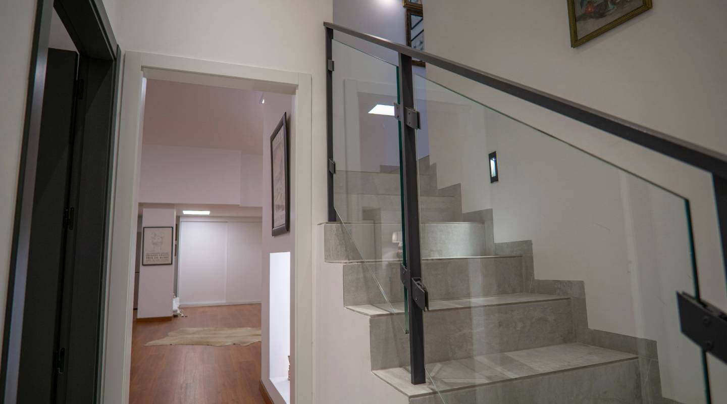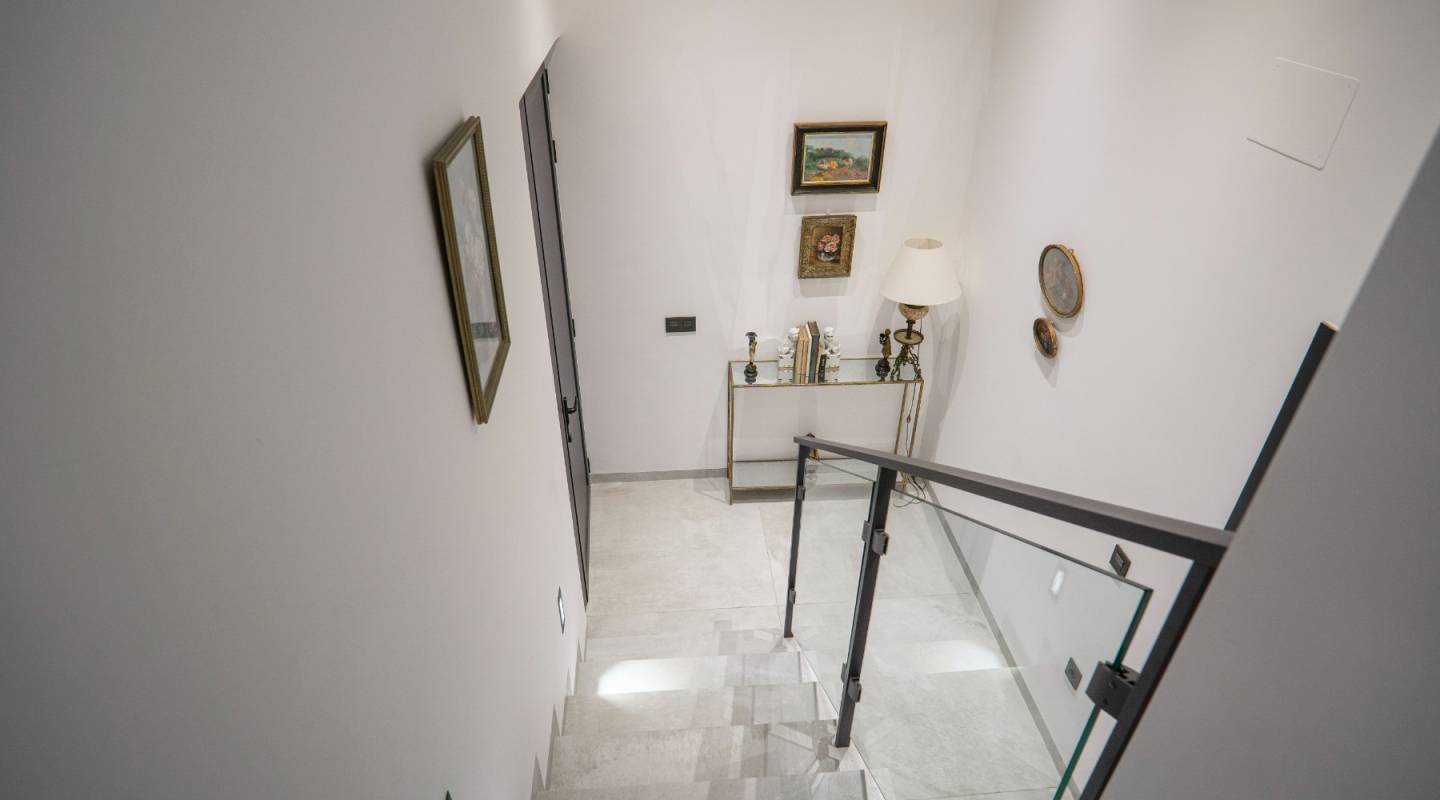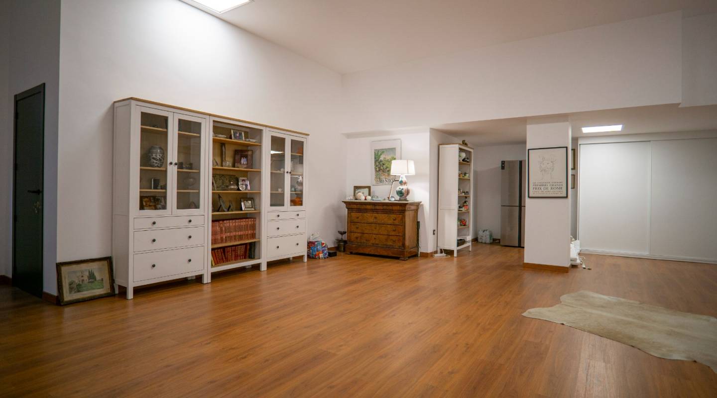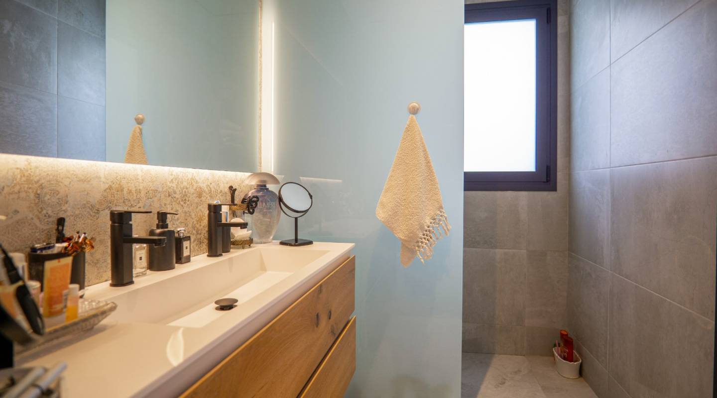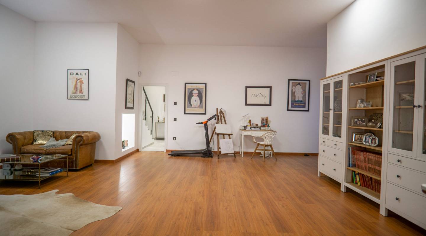 Op de eerste verdieping vind je twee tweepersoonsslaapkamers met twee badkamers (beide met vloerverwarming), een garage en een grote ruimte waar je een minibioscoop of speelkamer kunt maken.