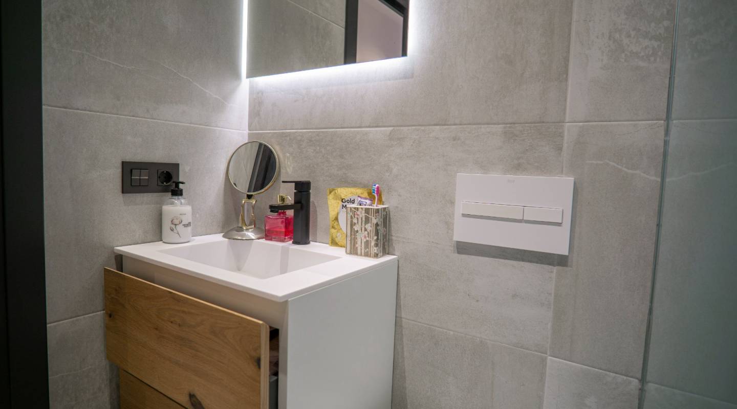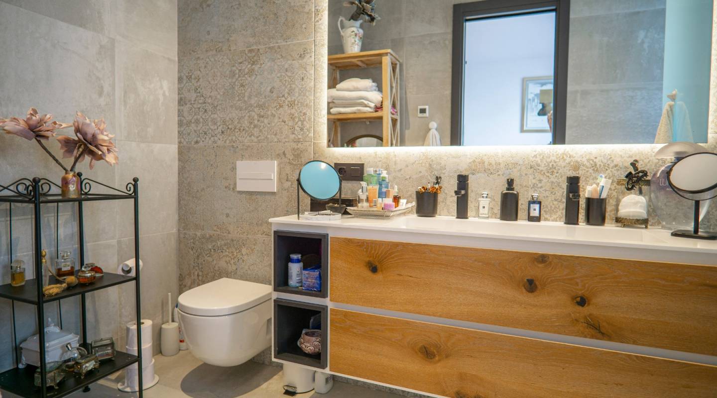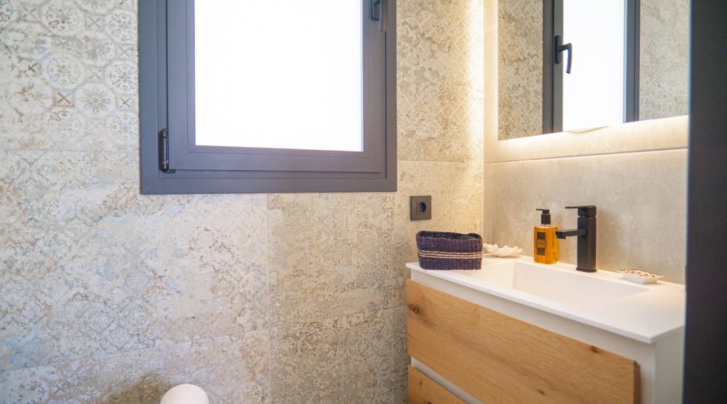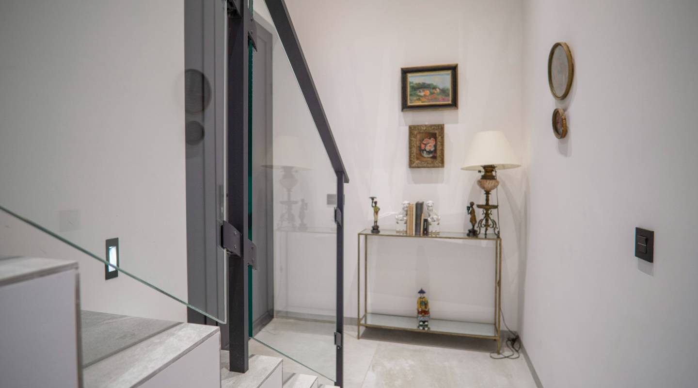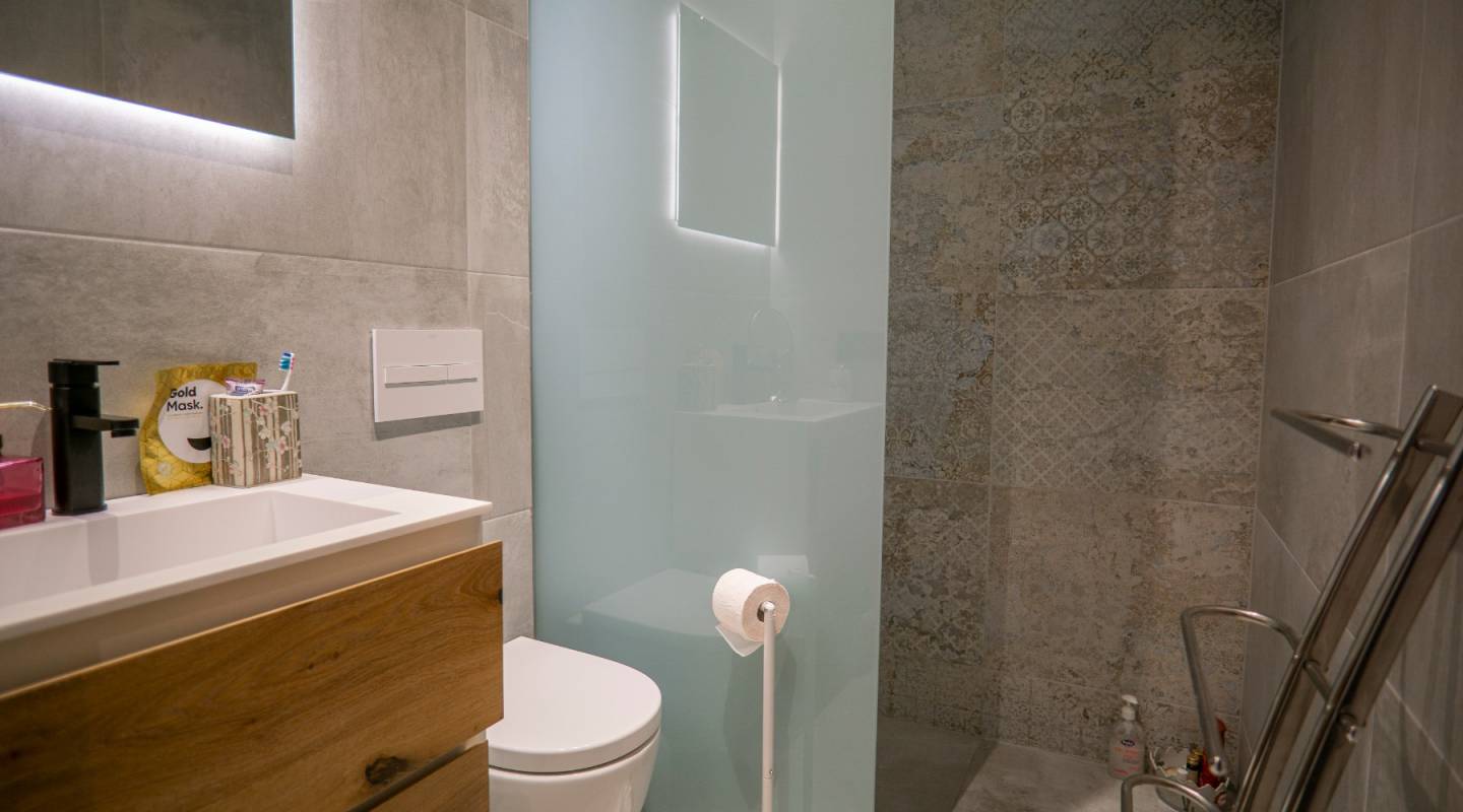 Op de eerste verdieping vind je twee tweepersoonsslaapkamers met twee badkamers (beide met vloerverwarming), een garage en een grote ruimte waar je een minibioscoop of speelkamer kunt maken.