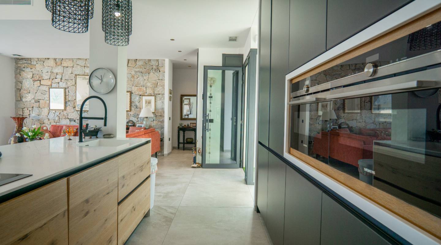 De villa is gebouwd over twee verdiepingen. Op de hoofdverdieping vind je twee tweepersoonsslaapkamers met twee badkamers, een hal, grote woonkamer met een open keuken en eethoek. Vanuit de woonkamer/keuken heb je een fantastisch uitzicht op zee. Vanaf hier heb je ook toegang tot het grote terras met een privézwembad.